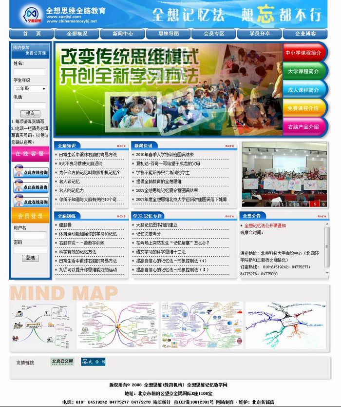 全想思維全腦教育機構自成立至今在北京、上海、山東、江西、遼寧、河南等地多次舉辦過記憶講座,已有逾萬名參加培訓的學員,取得驕人成績。在他們當中有大學生、中小學生及成年人士。