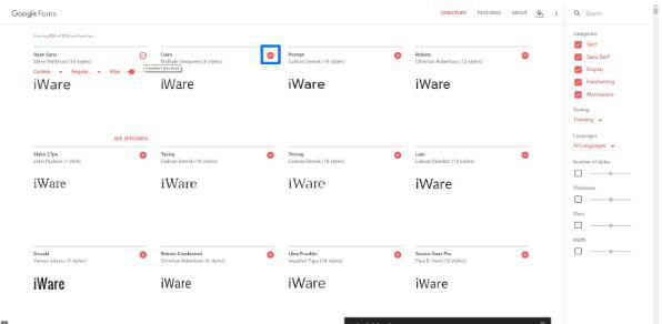 圖5. 點選 + 號按鈕,點選完會更第一個字型依樣變成 - 號按鈕,右下角會出現選擇的字型