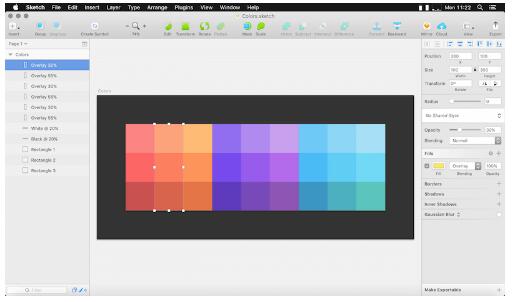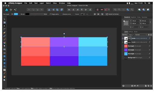 執行此操作的最簡單的方法之一是將部分透明的物體堆疊在基本色板之上,更改色板的部分以創建變體。Photoshop和Affinity Designer的調整層也可以用于此目的,并提供更多的控制。調整層修改下面的層的顏色,這意味著可以編輯基礎顏色,并自動創建其他變體。