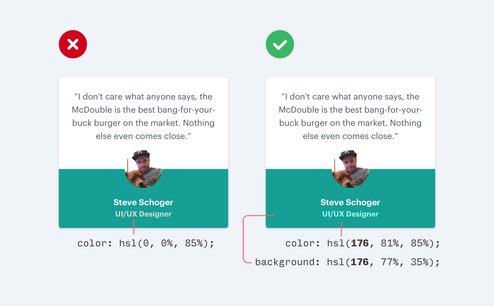 在白色背景下,將黑色的文本改成灰色,是不錯(cuò)的淡化其視覺效果的做法,但是在彩色背景下這么做,則是另外一回事。