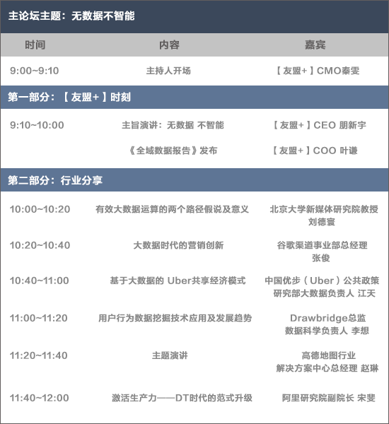 主論壇日程![]() 分論壇議程可關注【友盟+】官方微信公眾號進行了解! |