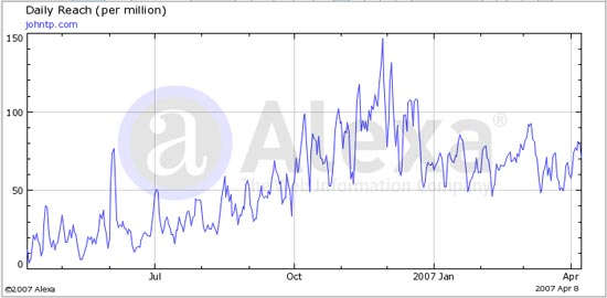 流量排名:[Traffic Rank] 這個就是我們最關心的 Alexa 世界排名,相信來到這里的用戶應該都清楚他的意義,就不再多做解釋了。