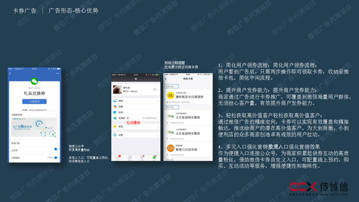 商家通過廣告進行卡券推廣,可覆蓋到微信海量用戶群體,無須擔心客戶量,有效提升商戶發(fā)券能力。