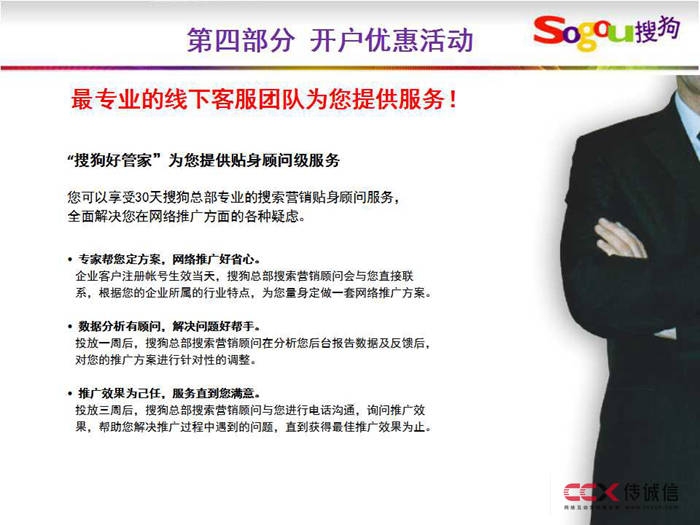 您可以享受30天搜狗總部專業的搜索營銷貼身顧問服務,
