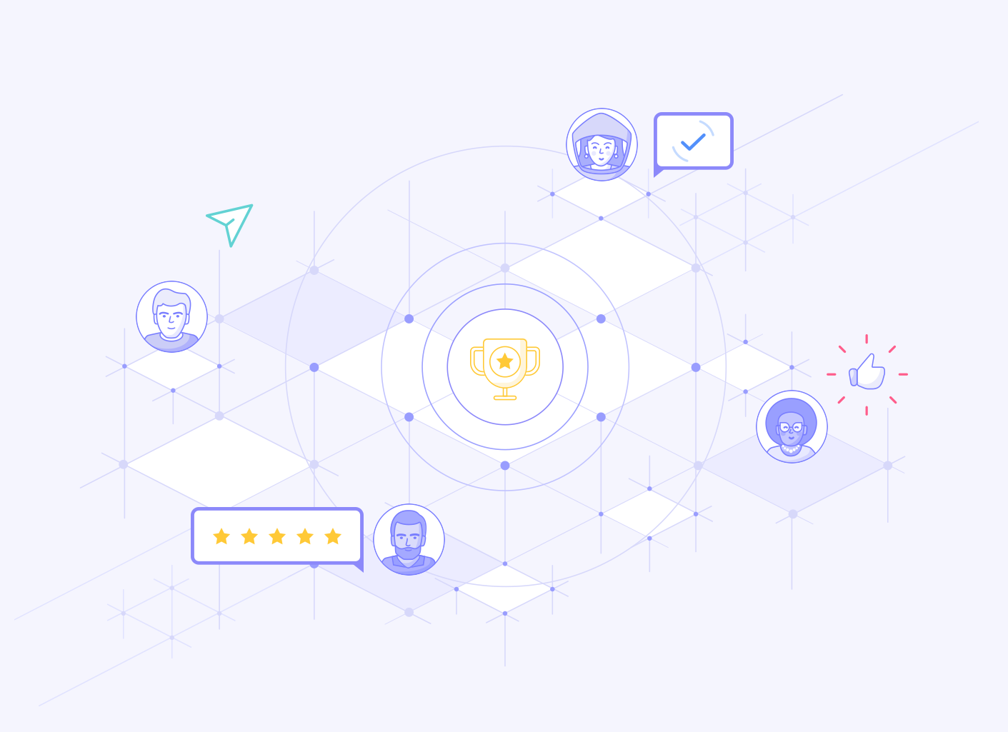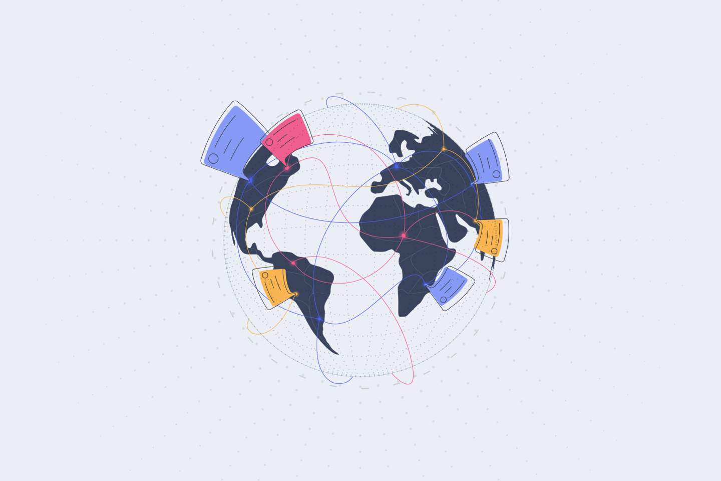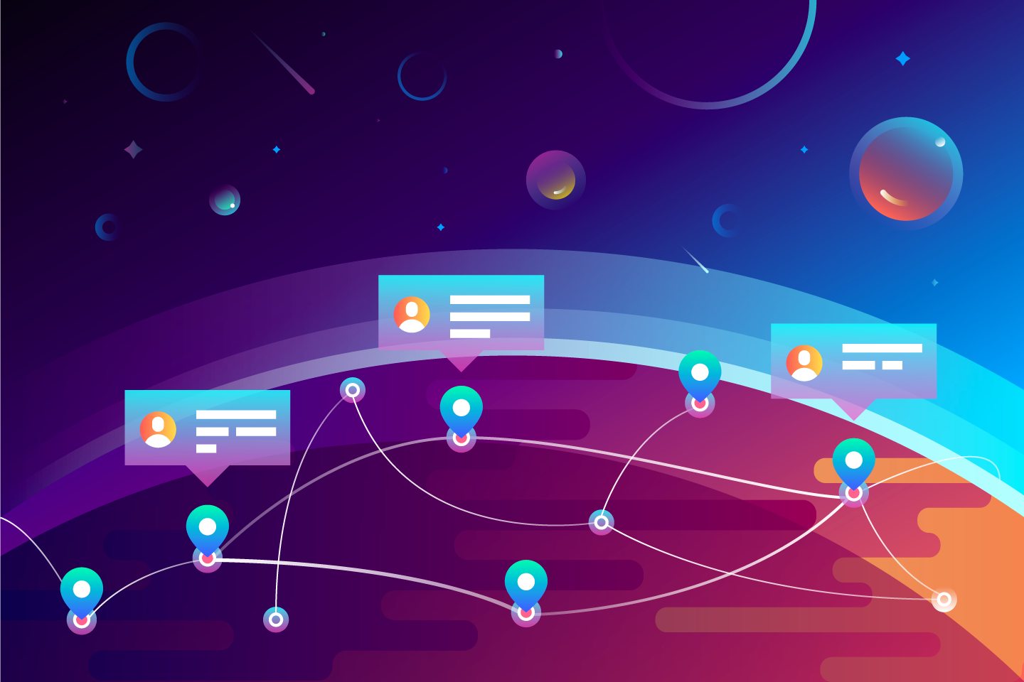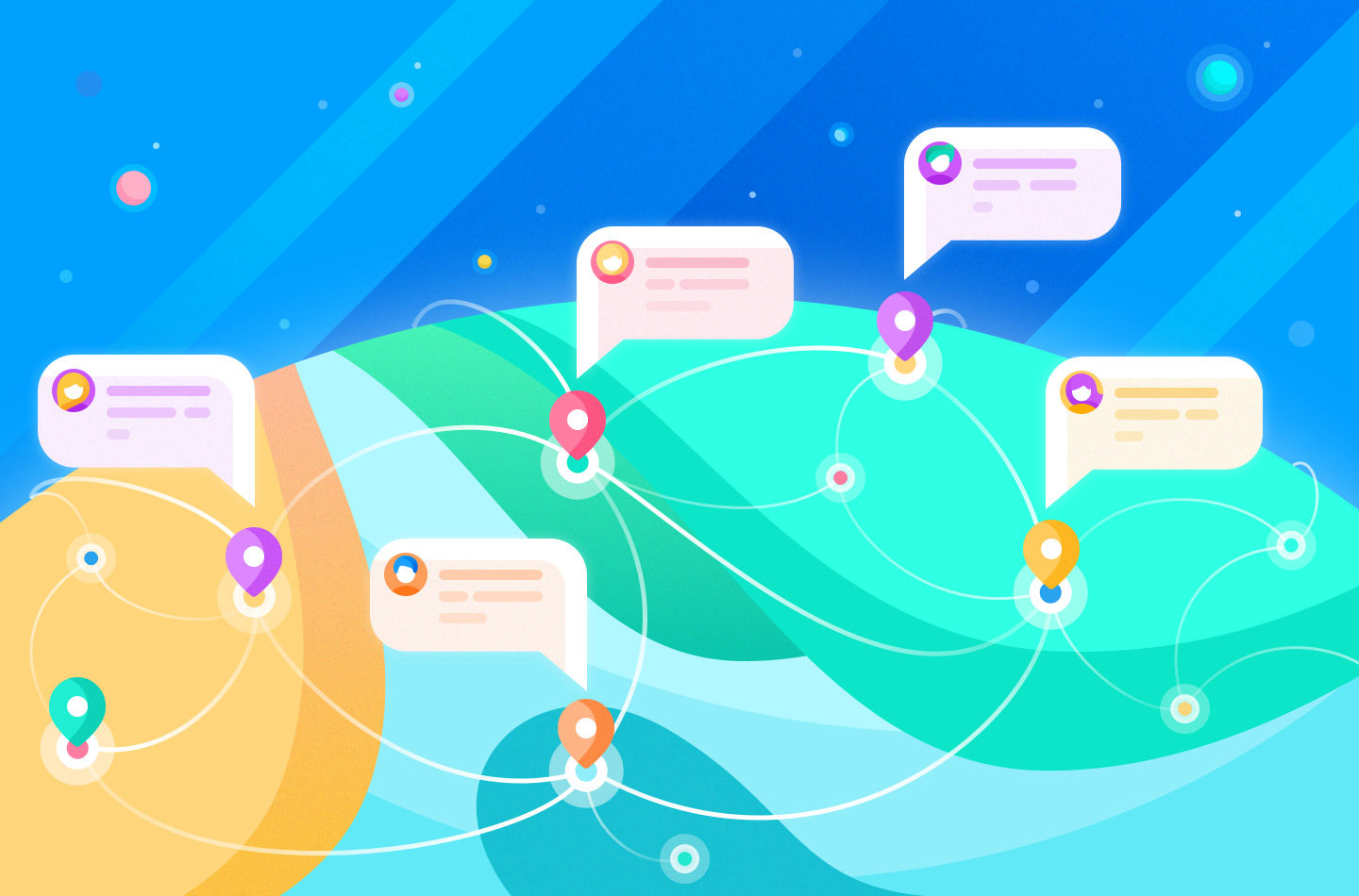 自定義的插畫常常會出現(xiàn)在著陸頁當(dāng)中,作為重要的UI組件幫助用戶理解產(chǎn)品的功能和概念。所以,在首圖的位置使用插畫是相當(dāng)普遍而有效的選擇。為了設(shè)計(jì)出更加有效的首圖插畫,Tubik團(tuán)隊(duì)中的 Arthur Avakyan 和 Denis Boldyriev 也參與到首圖插畫的頭腦風(fēng)暴和創(chuàng)意設(shè)計(jì)當(dāng)中來。設(shè)計(jì)師嘗試將地球上不同區(qū)域的用戶相互連接的概念來進(jìn)行設(shè)計(jì)。下面就是他們基于這一概念設(shè)計(jì)出來的插畫: