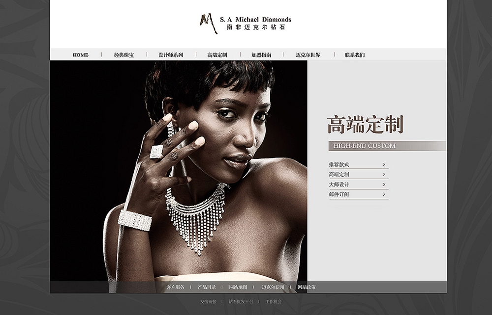 北京邁克爾品牌管理顧問有限公司(邁克爾鉆石中國)是由南非邁克爾鉆石有限公司為鉆石提供源,下設上海邁克爾鉆石有限公司(上海鉆交所會員),中央美院邁克爾首飾研發(fā)中心及邁克爾首飾制作所組成的專業(yè)鉆石經(jīng)營集團。 公司利用自有的礦業(yè)資源、資金;產(chǎn)品優(yōu)勢;準確有效的銷售手段,積極傳播鉆石首飾的專業(yè)知識,提高高層次飾品欣賞購買的品位,倡導無論春夏秋冬,總有鉆石飾品相伴的佩戴概念,培育及發(fā)展鉆石消費市場,努力引導國內(nèi)飾品消費方向與國際接軌。 公司采取專家(英國寶石學家,美國寶石學家)管理,連鎖經(jīng)營等運做模式,真正做到“視覺識別統(tǒng)一”、“財務管理統(tǒng)一”、“形象管理統(tǒng)一”、“人事管理統(tǒng)一”、“貨品管理統(tǒng)一”、“價格管理統(tǒng)一”、“經(jīng)營戰(zhàn)略統(tǒng)一”、“宣傳推廣統(tǒng)一”、“售后服務統(tǒng)一”十個統(tǒng)一,以此企業(yè)已建立起一支高素質(zhì)、高協(xié)作、高效率、國際化的營銷團隊。公司采取了嚴格的營銷管理措施,使MICHAEL DIAMONDS(邁克爾鉆石)品牌在時尚界及珠寶界獲得一致的肯定和地位,并在全國的推廣中依靠有效的經(jīng)營戰(zhàn)略及誠信互助、事實求是的精神獲得了成功。