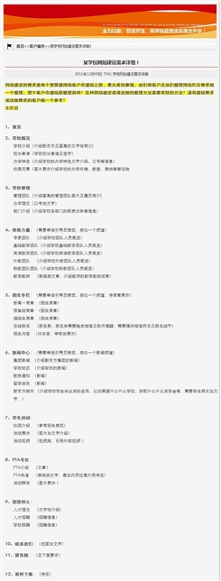 12教育類網(wǎng)站全案整理(招生問(wèn)答)招生問(wèn)答,我們特選出一個(gè)學(xué)校的案例設(shè)計(jì)小樣告知我們所做的工作有哪些,在建設(shè)前,一定要有一個(gè)詳細(xì)的欄目結(jié)構(gòu),才能便于設(shè)計(jì)人員完成以下工作!