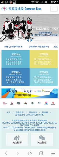 冠軍溜冰場手機(jī)版HTML5冠軍溜冰場CHAMPIONRINK國內(nèi)首家專業(yè)冰場管理機(jī)構(gòu),首個商業(yè)冰場連鎖品牌,中國滑冰協(xié)會(CSA)、中國冰球協(xié)會(CIHA)及亞洲滑冰協(xié)會(ISI)成員及冰上運(yùn)動后備人才基地、國家花樣滑冰等級測試指定場館,具有更國際化的設(shè)備設(shè)施、專業(yè)教學(xué)、服務(wù)體系。