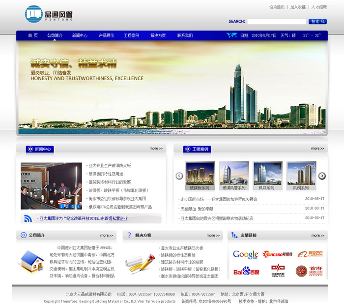 北京大元品威建材有限公司是致力于中央空調(diào)新型通風(fēng)管道系列產(chǎn)品的研發(fā)、生產(chǎn)、銷售、服務(wù)于一體的專業(yè)化企業(yè)。公司已建成年生產(chǎn)能力達(dá)100萬平方米玻鎂復(fù)合風(fēng)管板材的全自動化生產(chǎn)線,該生產(chǎn)線科技含量高,生產(chǎn)效率高。同時公司還具備先進的施工工藝及先進的檢測設(shè)備,主力打造高品質(zhì)產(chǎn)品。