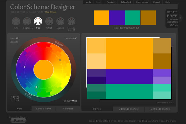 首先,你首先應該對您的網站設計的調色板 。您可以使用色輪有不同類型的調色板。例如,一個?單色的調色板 。在此面板中只有一個顏色,但與飽和度和亮度不同的價值觀。這些計劃是準確的,高尚的,具有鎮靜的效果 。