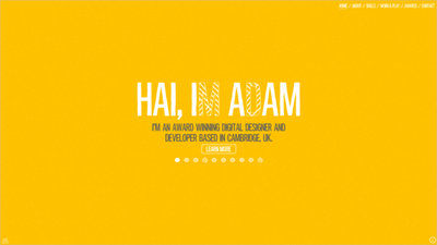 的一些顏色?該組合的網站有一些嚴重的個性,和工作是響亮和熱鬧的,因為它左右移動。最有效的是在風格上的一致性。網站黏結作為一個完整的作品,代表設計師,同時支持單個組合件-這正是這樣的網站應該做的。調色板注冊成立的銘牌,和閃爍的動畫帶來能量的網站。