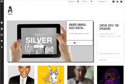 獎慶祝創造力,中性的設計美學設計師的作品有效地設置了舞臺。網格布局不修剪或有任何多余的裝飾,將有損或抵觸任何特色設計,但有趣的懸停效果有一個很好的像素化下拉陰影。過導航頁面左側的固定,固定在頂部的搜索和過濾功能。此導航的安排是最適合展示網站內容。