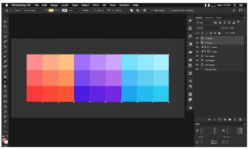 執行此操作的最簡單的方法之一是將部分透明的物體堆疊在基本色板之上,更改色板的部分以創建變體。Photoshop和Affinity Designer的調整層也可以用于此目的,并提供更多的控制。調整層修改下面的層的顏色,這意味著可以編輯基礎顏色,并自動創建其他變體。