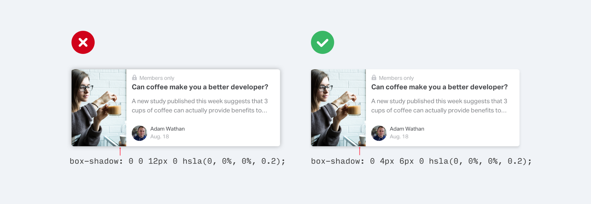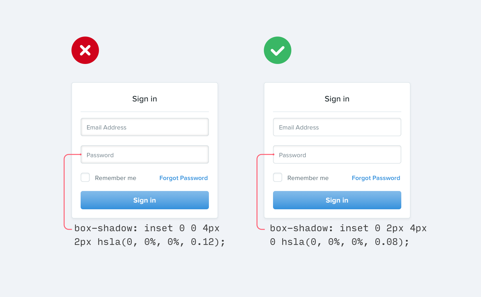 box shadow 同樣可以營造出邊界感,而且更加微妙,并不會顯得突兀,不會分散用戶的注意力。