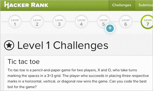 在黑客排名,編碼器通過競爭解決進行的跨整個科學的宇宙小的挑戰,包括像algorithmy,代碼金或人工智能領域打高分。如何編寫一個機器人贏在井字腳趾,當你匹配對別人呢?