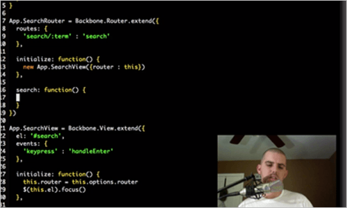 如果你正在學習Backbone.js,這些截屏會非常有用。廣泛的實時編碼會話將步行通過,從開始到更先進的東西,如on Rails的使用Backbone.js使用Ruby。