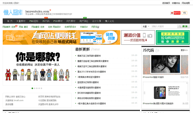 懶人圖庫一直專注于提供網頁素材下載,其內容涵蓋網頁素材,矢量素材,JS廣告代碼,小圖片,網頁背景,導航菜單,PNG圖標等,讓任何一個網頁設計師都能輕松找到自己想要的素材!!