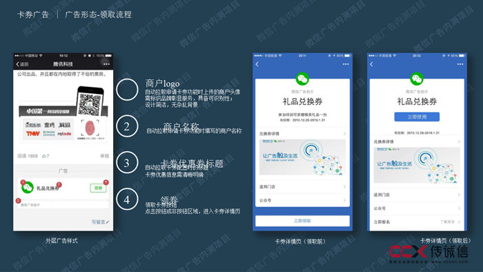 用戶看到廣告后,只需兩步操作即可領取卡券,收納至微信卡包,簡化中間流程。
