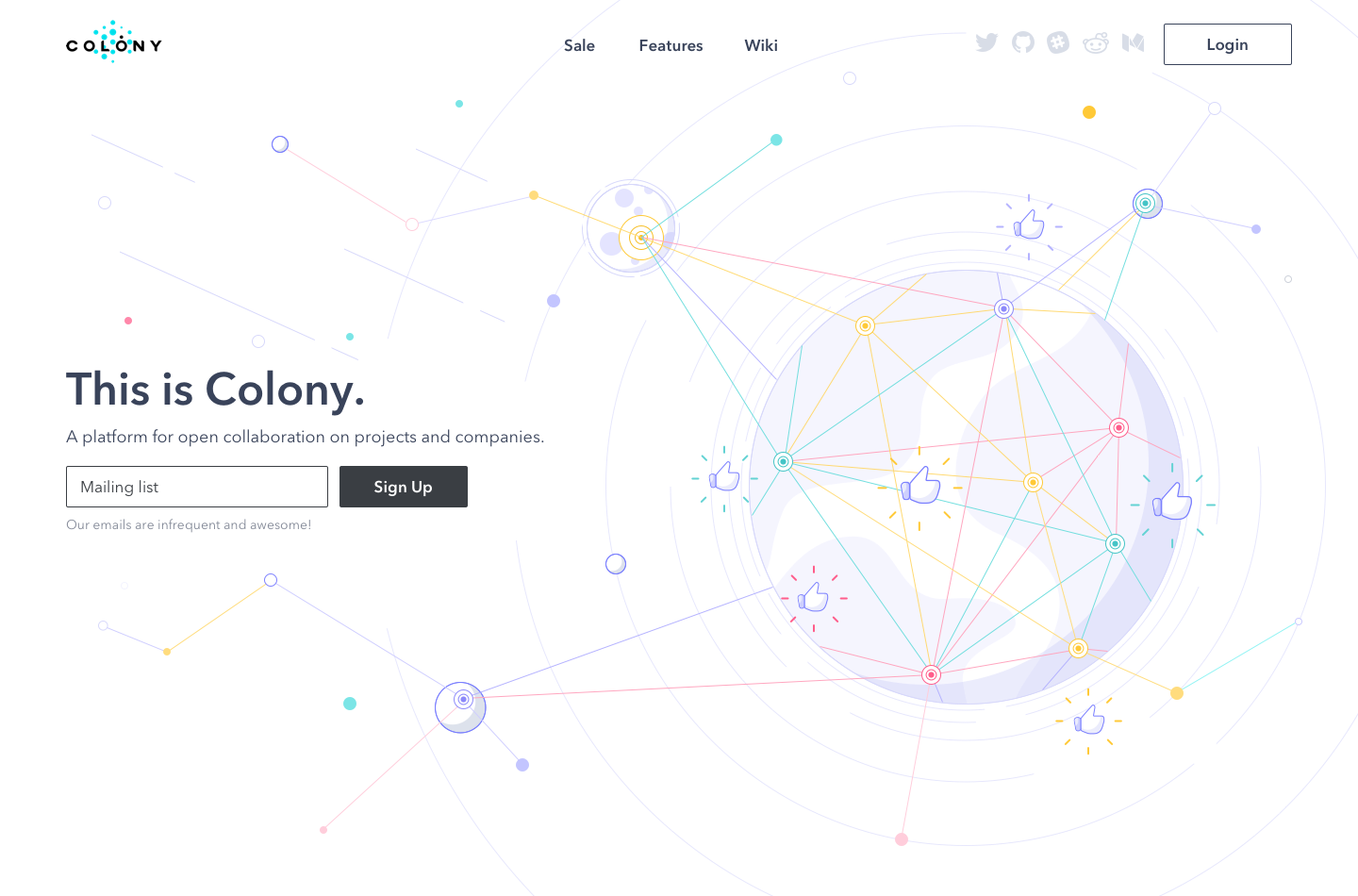 設(shè)計(jì)師們拿出了不同風(fēng)格的插畫,它們在主題上和整個(gè)UI保持一致,營造出友好、平易近人的氛圍,同時(shí)也讓人對整個(gè)公司形象產(chǎn)生足夠的好感。插畫中展示出 Colony 是如何幫助世界各地的用戶溝通、交流、達(dá)成目標(biāo)的。
